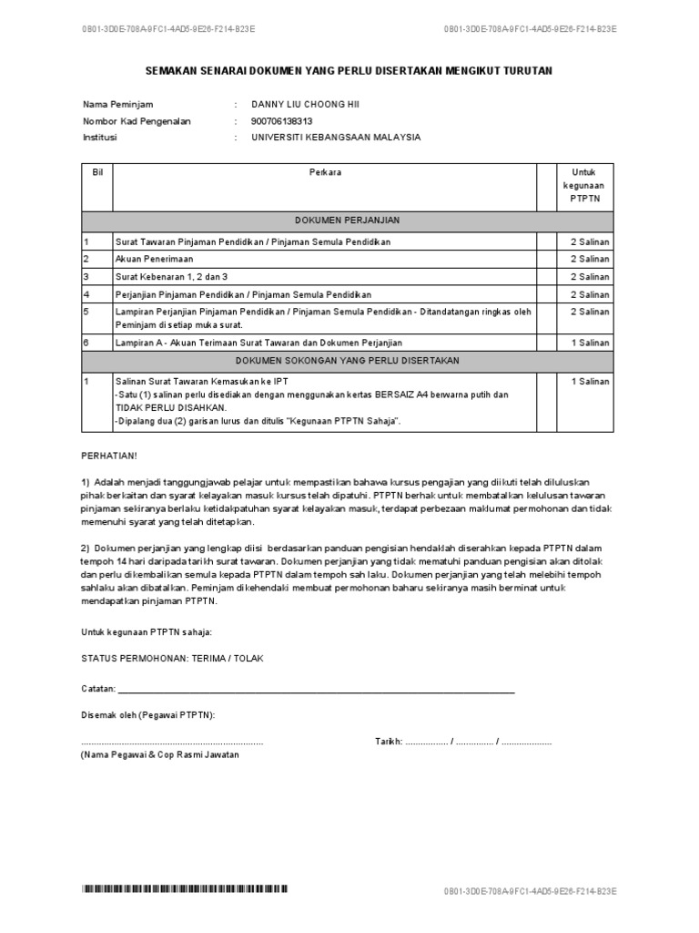Panduan Dan Peraturan Mengisi Dokumen Tawaran Pinjaman Pendidikan Pinjaman Semula Pendidikan Ptptn